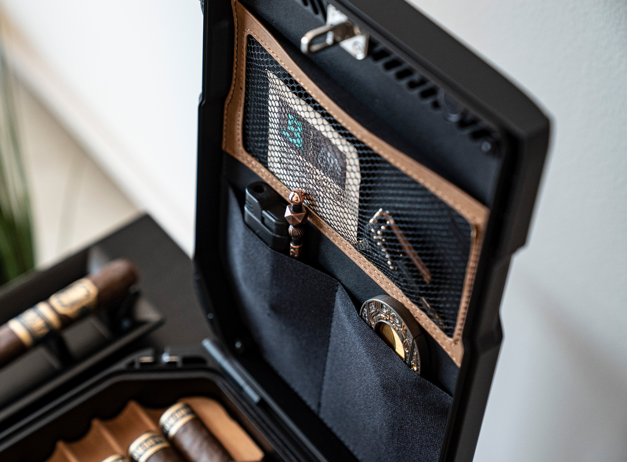 What’s Included | Leather Lid Organizer, Spanish Cedar Tray, 48″ Steel Cable, and (2) Backup Keys |
